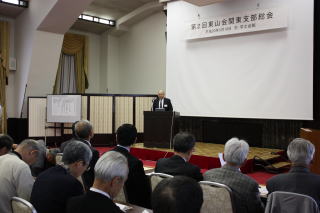 第2回東山会関東支部総会は、去る5月10日、昨年同様、学士会館で開催され、約80名の出席者を得て大盛況の中に終了しました。 愛知からご臨席頂いた5名の恩師(近藤一義、中村育雄、村上澄男、安田仁彦、新美智秀)、ご講演頂いた和田明広様、また東山会本部からご出席頂いた川地秀和会長、長谷川豊事務局長及び当日出席頂いた会員の皆様、運営基金にご協力頂いた会員の皆様に心よりお礼申し上げます。 長谷川先生の名大工学部の現状につき約20分ご説明頂いた後、和田様の基調講演:「技術者育成への提言:-トヨタ、アイシン、MHIでの経験を踏まえて-」が約40分ありましたが、以下の講演内容、即ち、